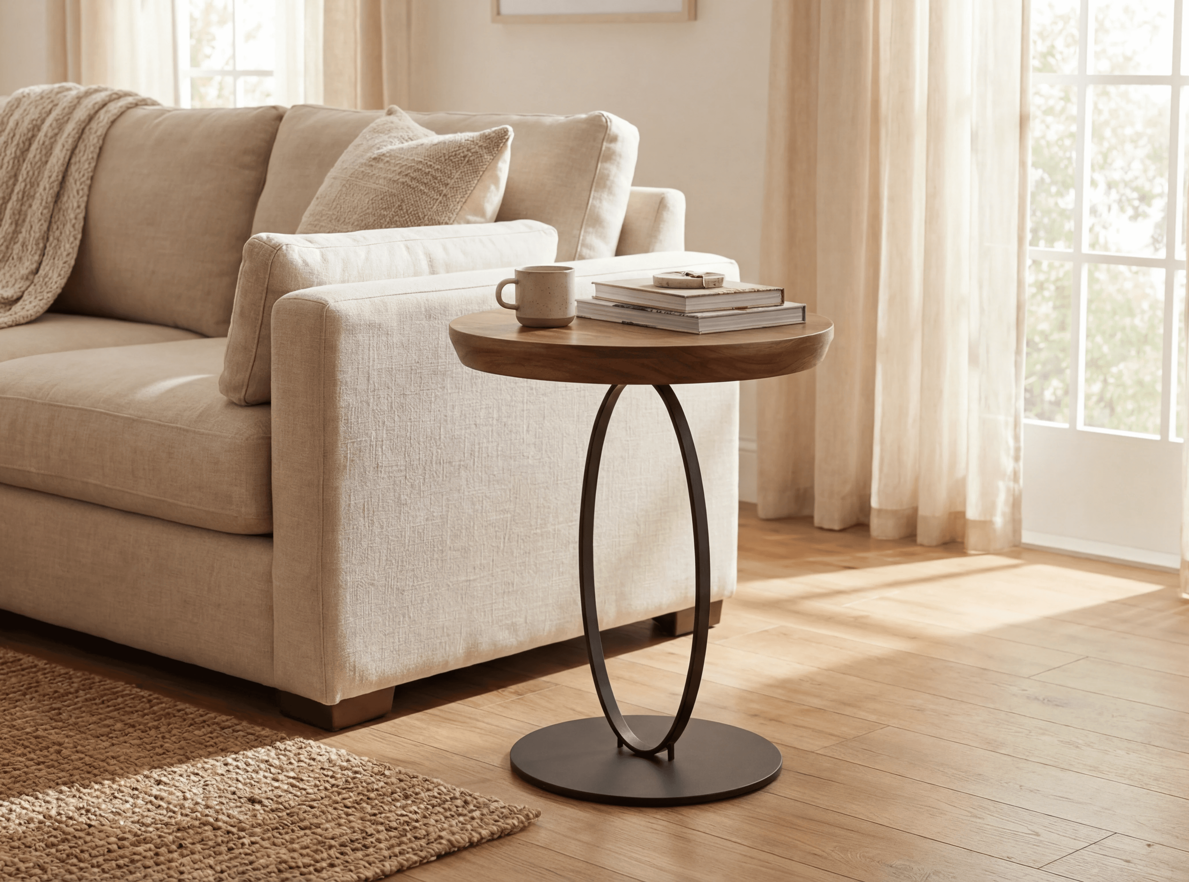 Lisbon side table is a round side table made of natural European Walnut slab wood top and steel powder coated base with different options of top edge finishing and base color The Lisbon side table combines valuable materials and finishes for a restrained and elegant design capable of offering new aesthetic-functional solutions. Both elements, top and base, have rounded geometries that give a sense of solidity and lightness